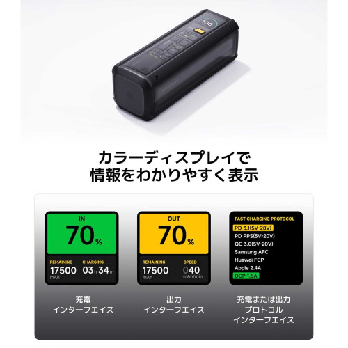 این مدل از باتری لیتیوم-یون استفاده میکنه که عملکرد پایداری داره. نکتهی چشمگیر دیگه، توان خروجی حداکثر ۱۴۰ وات و توان ورودی حداکثر ۱۰۰ واته که نشون میده این پاوربانک به راحتی میتونه دستگاههای سنگین مثل لپتاپ رو هم ساپورت کنه.