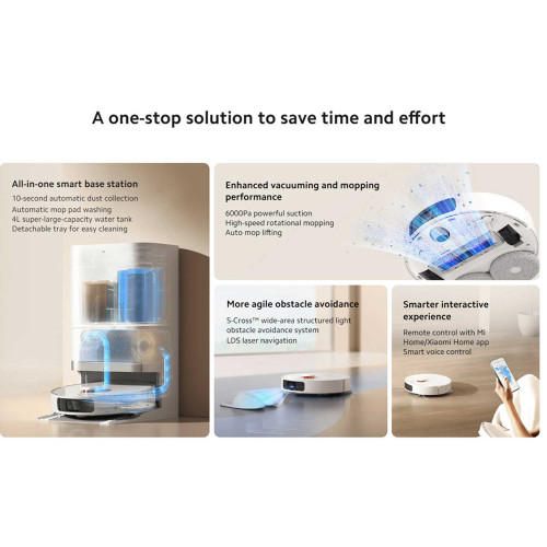 این جارو رباتیک با توان موتور 75 وات و توان مکش 6000 پاسکال، یکی از قدرتمندترین دستگاههای موجود در بازاره. مجهز به سنسورهای هوشمندی از جمله سنسور تشخیص ارتفاع، سنسور تشخیص دیوار، سنسور لیزری LDS، حسگر نور محیط، سنسور تشخیص اجسام، سنسور هوش مصنوعی S-Cross و سنسور نقشهیابی هست. این سنسورها به دستگاه کمک میکنن تا به صورت هوشمند مسیرش رو تشخیص بده و از برخورد با موانع و سقوط جلوگیری کنه. همچنین، با نصب اپلیکیشن MI HOME میتونید دستگاه رو به راحتی کنترل و برنامهریزی کنید.