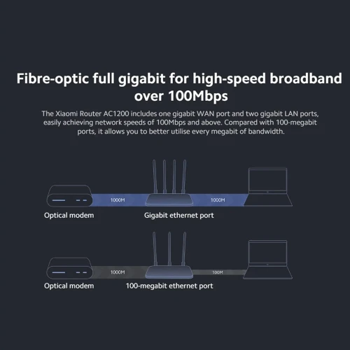 | سایر مشخصات | تعداد پورت شبکه (LAN): دو عدد, تعداد پورت شبکه (WAN): 1 عدد, تعداد پورت شبکه (WAN/LAN): دو عدد | الگوریتم تصحیح خطای هوشمند | دو باند بی سیم با پشتیبانی از سرعت۱۱۶۷ مگابیت بر ثانیه برای اتصالات اینترنتی سریع تر و روان تر مناسب برای اتصال تجهیزات هوشمند شیائومی |