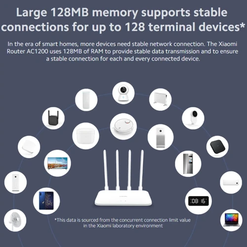 | سایر امکانات و قابلیت ها | مدیریت : آی او اس: کنترل هوشمند برنامه از طریق برنامه Mi Wi-Fi شیائومی, اندرویید, وب | حافظه گسترده ۱۲۸ مگابایتی برای پشتیبانی از اتصالات پایدار تا ۱۲۸ دستگاه |