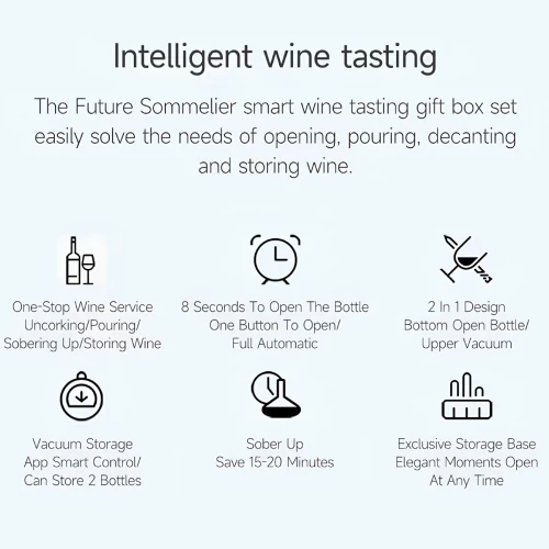 - عملکرد سریع و آسان: توانایی باز کردن بطری تنها در 8 ثانیه با فشار یک دکمه، تجربهای بینظیر از سرو نوشیدنی را فراهم میکند.