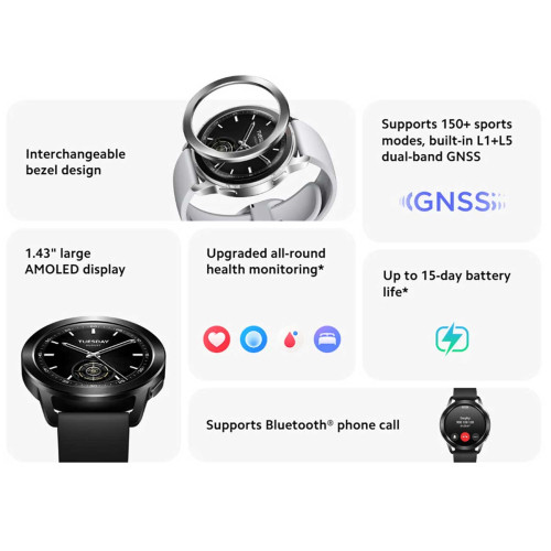 حسگرها | ضربان قلب اپتیکال، SpO2، حسگر امپدانس بیوالکتریکی، نور محیط، ژئو مغناطیس، ژیروسکوپ، شتابسنج، فشارسنج هوا، تشخیص دما |