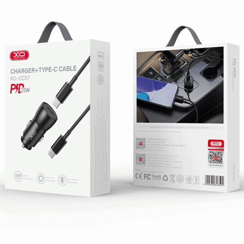 شارژر فندکی فست شارژ ماشین ایکس او مدل CC57 با کابل Type-C