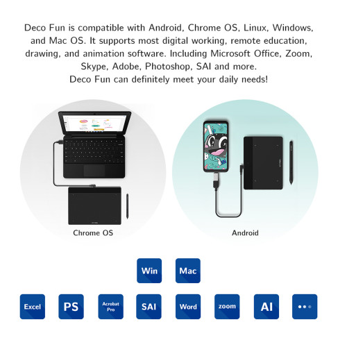 قلم نوریه مدل دکوفان از برند ایکس وی پن کاربری گستردهای دارد و با انواع سیستم عامل ها ازمک گرفته تا ویندوز و حتی اندروید هم کاربردی و سازگار است. البته باید این نکته را در خاطر داشت که برای شخصی سازی و استفاده حداکثری از امکانات این قلم نوری و همچنین سایر مدل های قلم نوری از برند ایکس پی پن حتماً نرم افزار درایو مربوطه را در سیستم خود نصب داشته باشید.