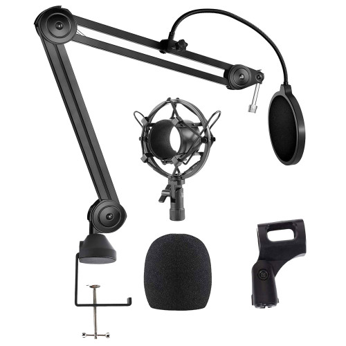 | اقلام همراه | پیچ تبدیل 3.8 اینچی به 5.8 اینچی | گیره اتصال | پاپ فیلتر | شوک مونت | گیره نگهدارنده میکروفون | 1 عدد فیلتر نرم کننده صدا |