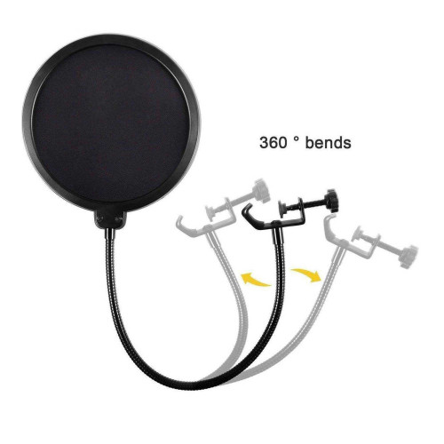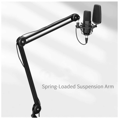 یکی دیگه از ویژگیهای مهم این محصول اینه که پاپ فیلتر و شوک مونت داره. پاپ فیلتر یه صفحهی گرده که با یه لایه پارچه بافته شده. این قطعه با یه پایه به پایهی میکروفون وصل میشه و کمک میکنه تا قدرت اضافی صدا گرفته بشه و نویزی به وجود نیاد. شوک مونت هم یه نوع لرزه گیره که برای نگهداری یا جدا کردن میکروفون ساخته شده و به نوعی از ضربههایی که شاید باعث لرزش و کاهش کیفیت صدا بشه، جلوگیری میکنه.