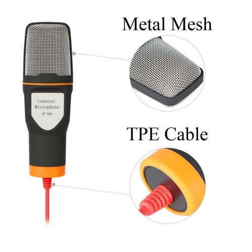 در هر سه مدل از سری Sf-666 بسته بندی مشترکی وجود دارد و با باز کردن بسته بندی خود میکروفن به همراه یک پایه پیش روی شما قرار خواهد گرفت . فارغ از نوع کابل اتصال که USB-C ، USB-A و یا جک 3.5 میلی متری باشد جنس کابل و سیم ، بسته بندی و خود بدنه میکروفن ها یکسان است . جنس توری فلزی به نسبت قابل قبول بوده و بدنه هم از پلاستیکی مات و به نسبت خوش ساخت ساخته شده است . رگه هایی ازرنگ نارنجی را هم می توان در پایینی ترین قسمت میکروفن و همینطور قسمت پایینی توری فلزی مشاهده کرد که در نوع خود جالب هستند و ظاهر میکروفن ها را نیز از سادگی مطلق در می آورند.