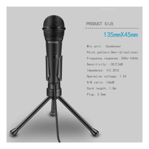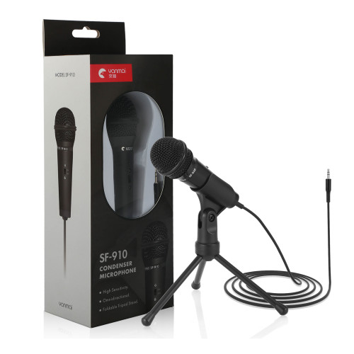 YANMAI SF-910 یک میکروفون کندانسری با کیفیت است که می توان از آن برای کاربردهایی نظیر آوازخوانی، چت در اینترنت، بازی های آنلاین، ویدئو کنفرانس و موارد دیگر استفاده کرد. این میکروفون خوش دست و خوش فرم، ظاهری شیک و کلاسیک دارد. بدنه آن از جنس پلاستیک مقاوم (ABS) است و توری بادوام و مقاومی دارد. میکروفن SF910 از طریق کابلی به طول حدوداً 2 متری با کانکتور جک 3.5 میلیمتری صدا به دستگاه هایی که از این پورت پشتیبانی می کنند، متصل می شود. فقط کافیست جک صدا را به رایانه تان متصل کنید، بدون نیاز به هیچ نرم افزاری آماده بکار می شود. همچنین برای اتصال این میکروفون به گوشی موبایل یا لپ تاپ های تک فیش باید از تبدیل 2 به 1 جک 3.5 میلی متری استفاده کرد. الگوی قطبی و یا روش دریافت صدا در این میکروفون، به صورت همه جهته (360درجه ای) است، یعنی حساسیت میکروفون در تمام نقاط یکسان است و صدا از همه جهات به صورت یکنواخت دریافت می شود و پاسخ فرکانسی در محدوده 50 هرتز الی 16000 هرتز دارد. میکروفون یانمای SF910 مجهز به فناوری نویز کنسلینگ است که به شما امکان می دهد تا صدایی واضح تری برای جلسات ویدئویی، ضبط و بازی و غیره پخش کنید.