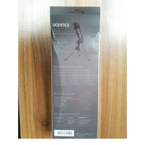 YANMAI SF-910 یک میکروفون کندانسری با کیفیت است که می توان از آن برای کاربردهایی نظیر آوازخوانی، چت در اینترنت، بازی های آنلاین، ویدئو کنفرانس و موارد دیگر استفاده کرد. این میکروفون خوش دست و خوش فرم، ظاهری شیک و کلاسیک دارد. بدنه آن از جنس پلاستیک مقاوم (ABS) است و توری بادوام و مقاومی دارد. میکروفن SF910 از طریق کابلی به طول حدوداً 2 متری با کانکتور جک 3.5 میلیمتری صدا به دستگاه هایی که از این پورت پشتیبانی می کنند، متصل می شود. فقط کافیست جک صدا را به رایانه تان متصل کنید، بدون نیاز به هیچ نرم افزاری آماده بکار می شود. همچنین برای اتصال این میکروفون به گوشی موبایل یا لپ تاپ های تک فیش باید از تبدیل 2 به 1 جک 3.5 میلی متری استفاده کرد. الگوی قطبی و یا روش دریافت صدا در این میکروفون، به صورت همه جهته (360درجه ای) است، یعنی حساسیت میکروفون در تمام نقاط یکسان است و صدا از همه جهات به صورت یکنواخت دریافت می شود و پاسخ فرکانسی در محدوده 50 هرتز الی 16000 هرتز دارد. میکروفون یانمای SF910 مجهز به فناوری نویز کنسلینگ است که به شما امکان می دهد تا صدایی واضح تری برای جلسات ویدئویی، ضبط و بازی و غیره پخش کنید.