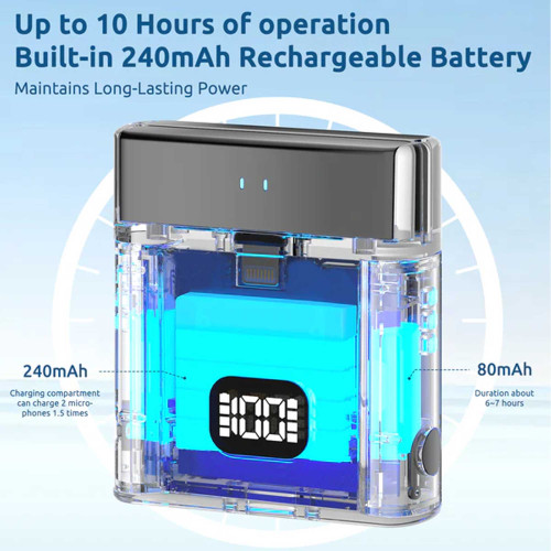از نظر باتری، میکروفون GF323 در حالت ضبط حدود 6 ساعت شارژدهی داره و با وجود نشانگر میزان شارژ، کاربر همیشه میتونه وضعیت باتری رو بررسی کنه.