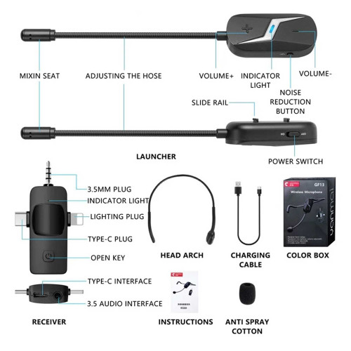 میکروفون هدمیک بیسیم یانمای مدل GF13 یکی از بهترین انتخابها برای افرادی هست که به دنبال یک میکروفون بیسیم حرفهای برای استفاده در کلاسهای آنلاین، کنفرانسها و سایر مصارف صوتی هستند. این میکروفون با طراحی ارگونومیک و وزن سبک، راحتی استفاده طولانیمدت رو فراهم میکنه. همچنین با پشتیبانی از سه نوع اتصال مختلف شامل Lightning، Type-C و جک 3.5 میلیمتری، شما میتونید به راحتی آن را به انواع دستگاهها متصل کنید.