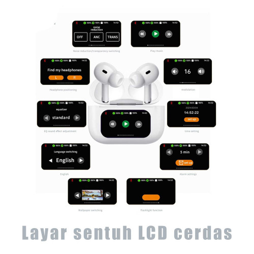 توضیحات کنترل کننده | ضربه به هر ایرپاد : وصل تماس،پخش،پاز کردن،قطع کردن | لمس رو به بالا : زیاد کردن صدا | لمس رو به پایین : کم کردن صدا | 2ثانیه نگه داشتن ایرپاد راست : transparent/noise reduction/reject calls | 2ثانیه نگه داشتن ایرپاد چپ : siri/voice assistant/reject calls | 5ضربه زدن : reset and shut down | صفحه نمایش لمسی باکس شارژ : قابلیت عوض کردن موسیقی ، کم و زیاد کردن صدا ، کنترل کردن کاهش نویز | قابلیت شارژ باکس شارژ از طریق کابل type-C |