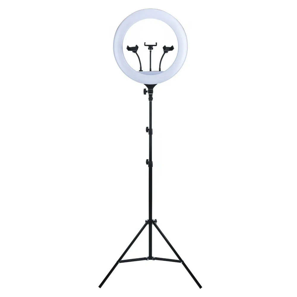 رینگ لایت Ring Fill Light ZD666 46 با سه هولدر موبایل تولید شده که وزن هرکدوم 52 گرمه و برای نگهداری از گوشیهای هوشمند طراحی شدن. این محصول رو میتونین توی سه حالت نوری مختلف مهتابی، آفتابی و ترکیب این دو تنظیم کنین. برای این رینگلایت، ریموت کنترل هم در نظر گرفته شده که امکان تنظیمات راحت رو بهتون میده. برای کار با این محصول باید کابل 1.8 متری اون رو به برق وصل کنین که آداپتور سوزنی داره و 15 ولته.