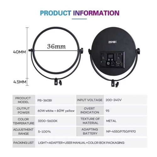 مشخصات فیزیکی ZSYB PB 360Bi LED Light